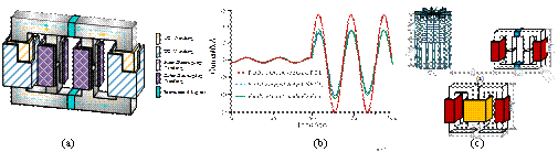 针对传统磁饱和铁心型交流限流系统需要外加空心电抗器,导致占地面积和体积过大问题。论文提出一种绕制非正交解耦绕组的紧凑型饱和铁心限流器(Compact Saturated core Fault Current Limiter ,CSFCL)具有重要工程借鉴意义。CSFCL将限流系统外加的空心电抗器以非正交解耦的形式绕制进限流器铁心部分,在不影响限流器限流性能的情况下,大大减小限流系统的占地面积和体积,较传统限流系统的体积减少了47.8%,占地面积减小了85.1%。图2是CSFCL具体拓扑结构、限流效果以及限流系统排布图。